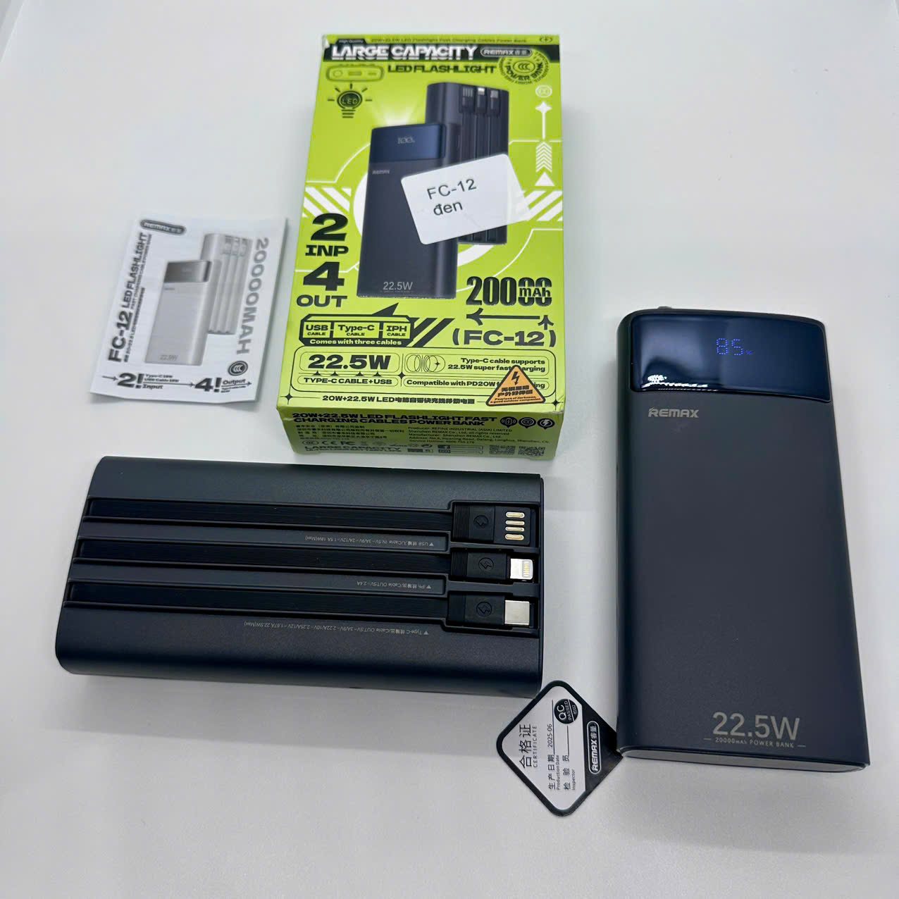 3. Cổng Type-C sạc nhanh hai chiều, đầu vào sạc nhanh 18W, đầu ra sạc nhanh PD20W; đầu vào cáp USB sạc nhanh 18W; đầu ra cáp IPh Sạc nhanh 12W