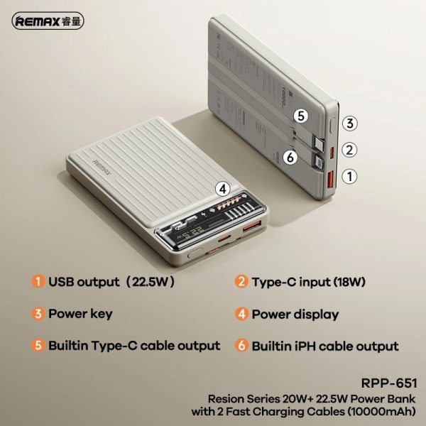 Pin sạc dự phòng 10000mAh Remax RPP-651 sử dụng lõi thế hệ mới kích thước khá nhỏ chỉ 110 x 68 x 17.5mm cùng trọng lượng chỉ 184g.