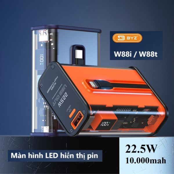 Pin Dự Phòng Sạc Nhanh 22.5W Trong Suốt BYZ W88i 10.000mah///DL