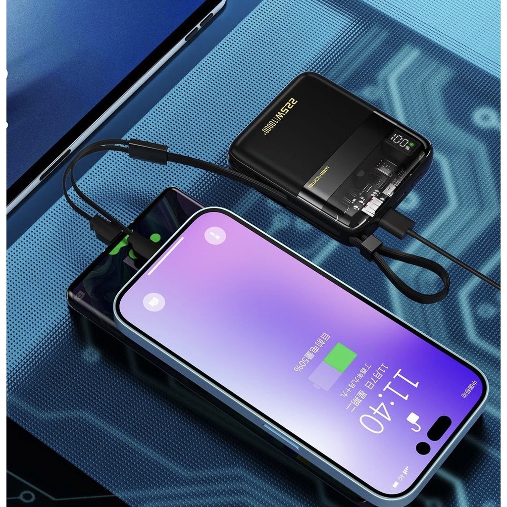 ✅ Tích hợp 2 sợi cáp trên pin: Cáp Type C và Lighting