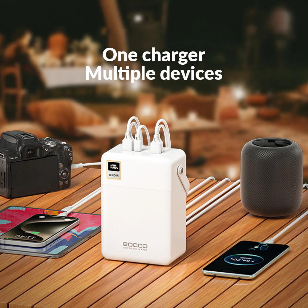 Pin Dự Phòng WEKOME: Dung Lượng Lớn và Đa Năng Pin dự phòng WEKOME có dung lượng lớn từ 30.000mAh đến 80.000mAh, giúp bạn sạc được nhiều thiết bị liên tục mà không cần tìm kiếm nguồn điện gần đó.