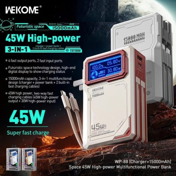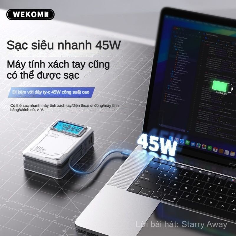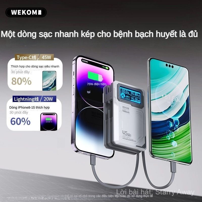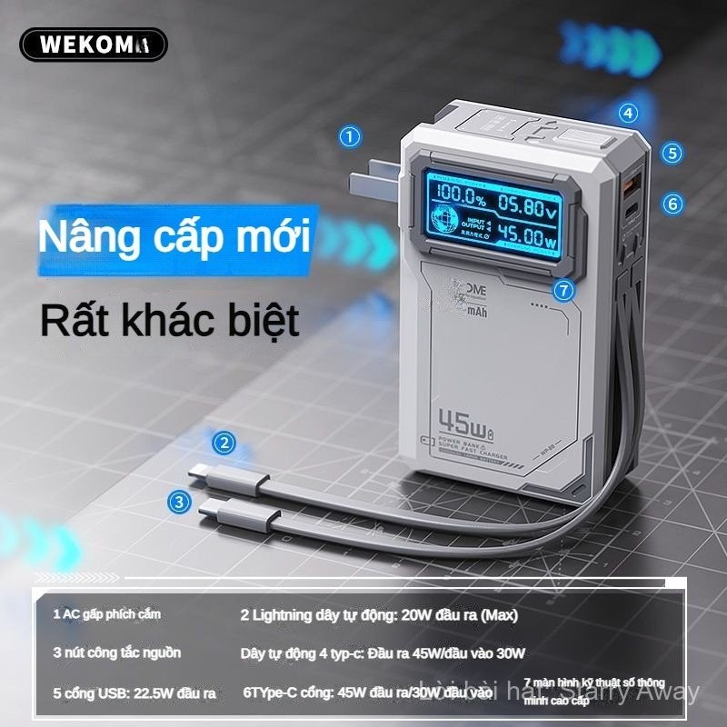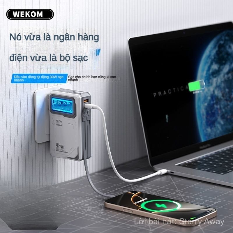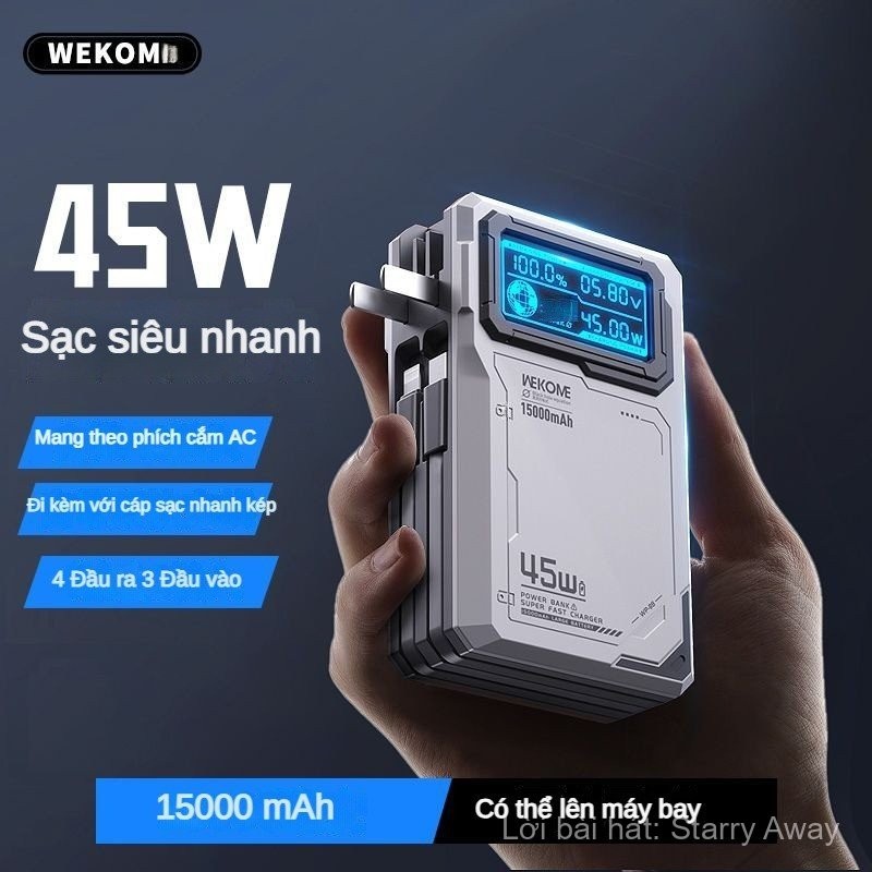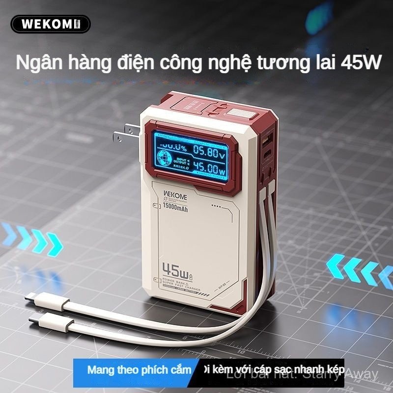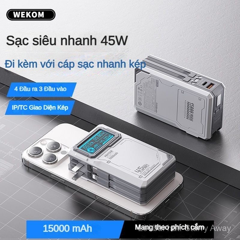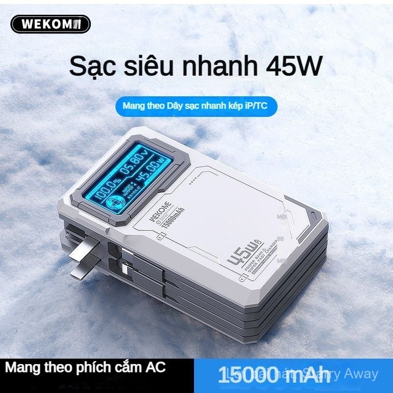 Nhìn chung, Ngân hàng điện WEKOM đi kèm với đầu cáp riêng Ngân hàng điện 45w15000mah là một thiết bị sạc mạnh mẽ và thiết thực, phù hợp với tất cả các loại điện thoại di động và máy tính xách tay, để bạn có thể giữ thiết bị của mình Sạc đầy mọi lúc, mọi nơi. Mang về nhà càng sớm càng tốt để việc sạc không còn là rắc rối của bạn nữa!