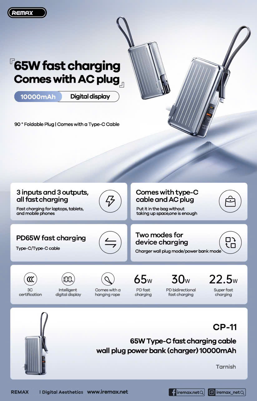 Cáp sạc nhanh Type-C 65W cắm tường, pin dự phòng (sạc) 10000mAh