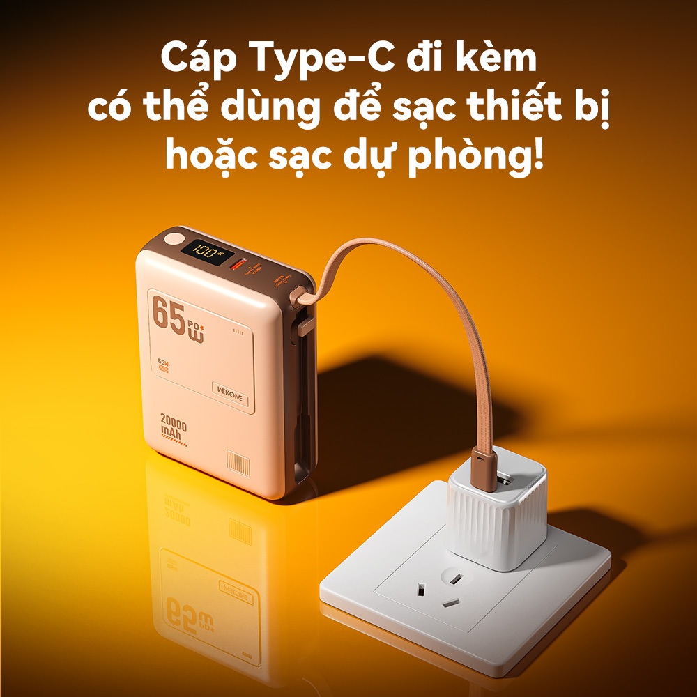 Tích hợp cáp sạc nhanh Type-C công suất cao hai chiều có thể tháo rời