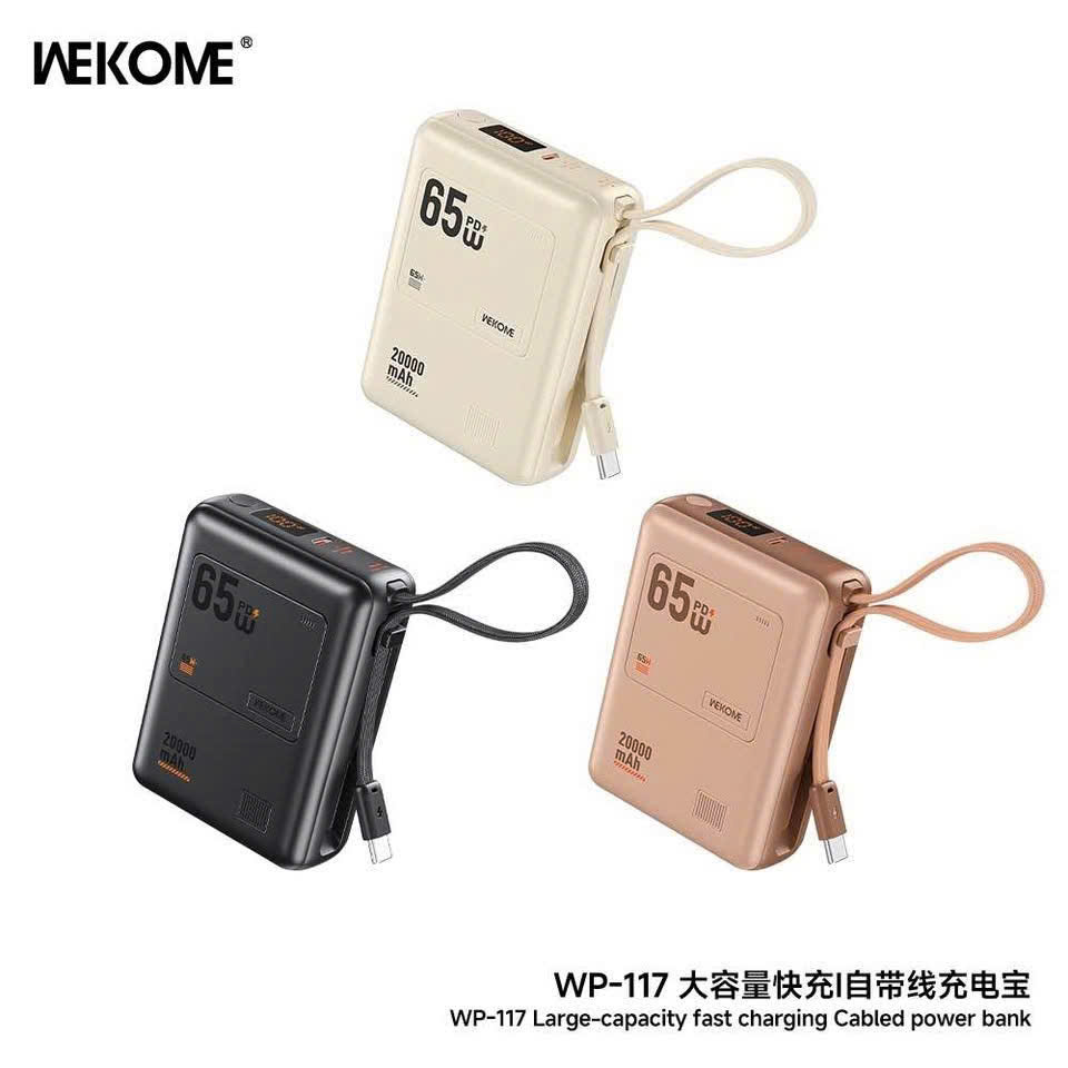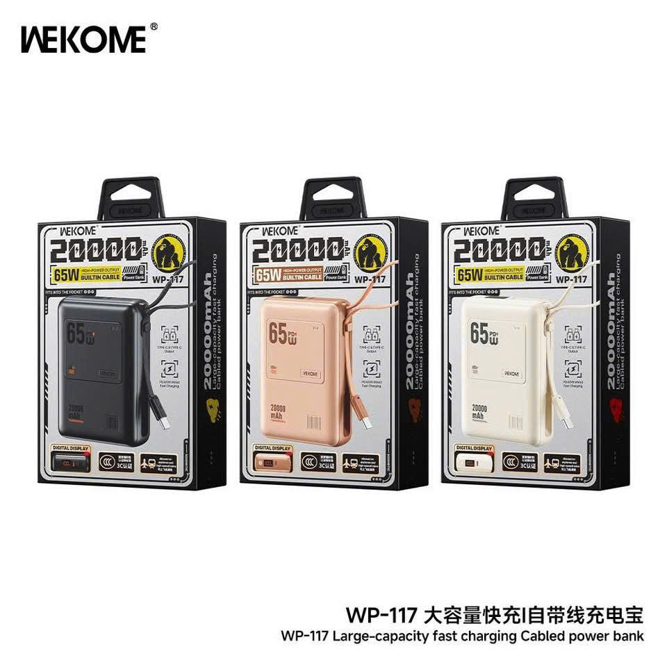 WEKOME 20000mAh Dung lượng lớn 60W Sạc nhanh Ngân hàng điện đầu ra cao với cáp Type-C tích hợp, được chứng nhận 3C, an toàn cho máy bay