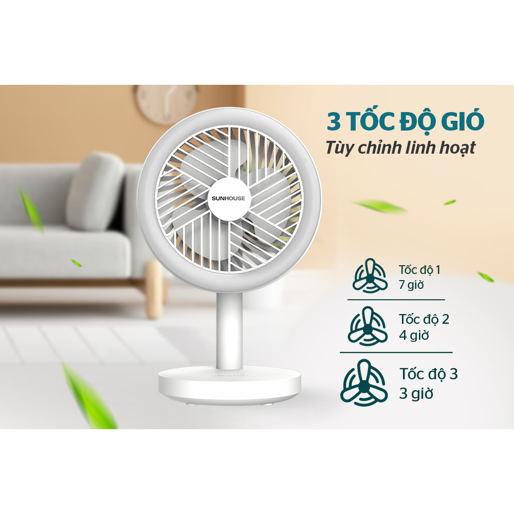 ✅ Quạt sạc mini Sunhouse SHD7114 có thiết kế nhỏ gọn, sử dụng pin sạc chất lượng cao, hoạt động liên tục đến 7 giờ giúp làm mát hiệu quả cho cả gia đình bạn trong những lúc mất điện.
