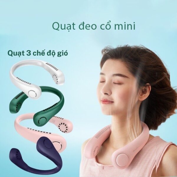 Quạt thể thao đeo cổ thông minh không cánh, 3 cấp độ gió mạnh pin sạc