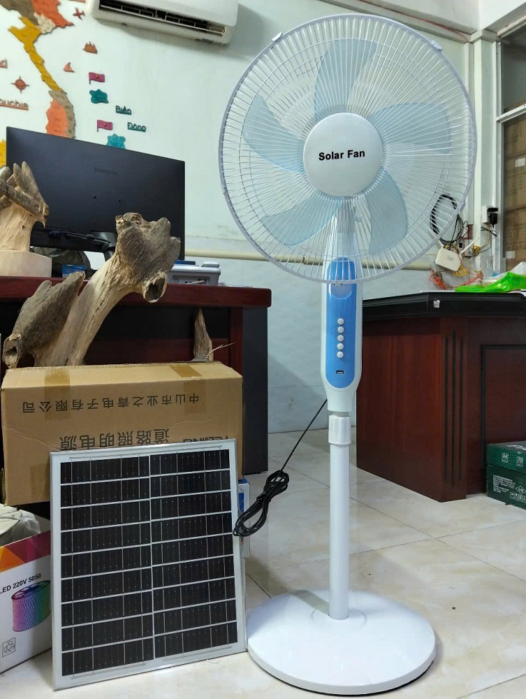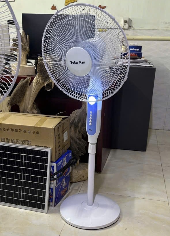 - Sạc 1.5A Adapter sạc ( Quạt có thể xạc bằng điện lưới hoặc dùng tấm năng lượng mặt trời)