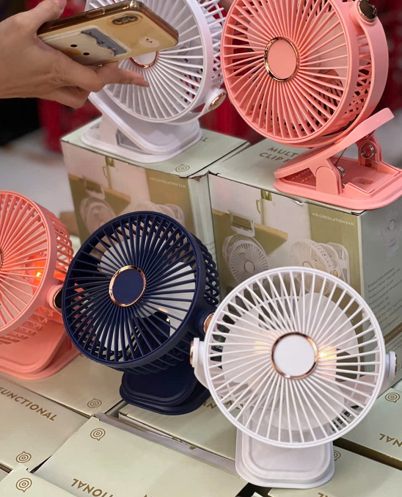Quạt mini kẹp để bàn tích điện 5 mức độ gió 3 mức độ đèn pin 5000mah