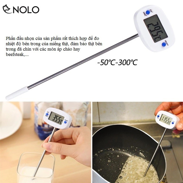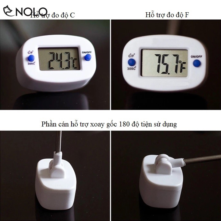 Tên sản phẩm: Dụng Cụ Que Nhiệt Kế Thermo Đo Nhiệt Độ Thức Ăn, Nước Uống, Thịt, Cá Xoay 180 Độ