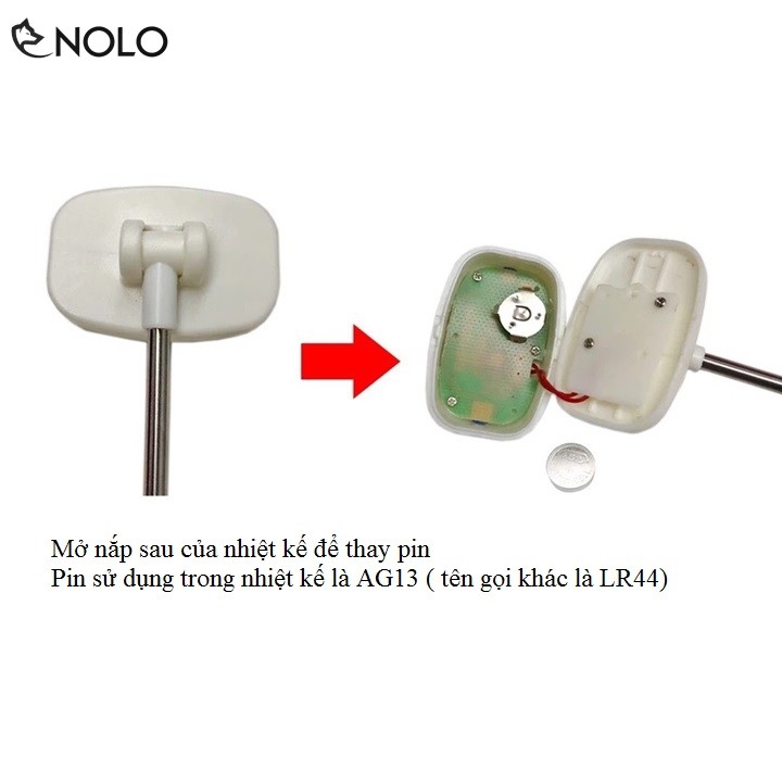 Nguồn: pin AG13 ( đã có gắn sẵn trong nhiệt kế, có thể thay pin)
