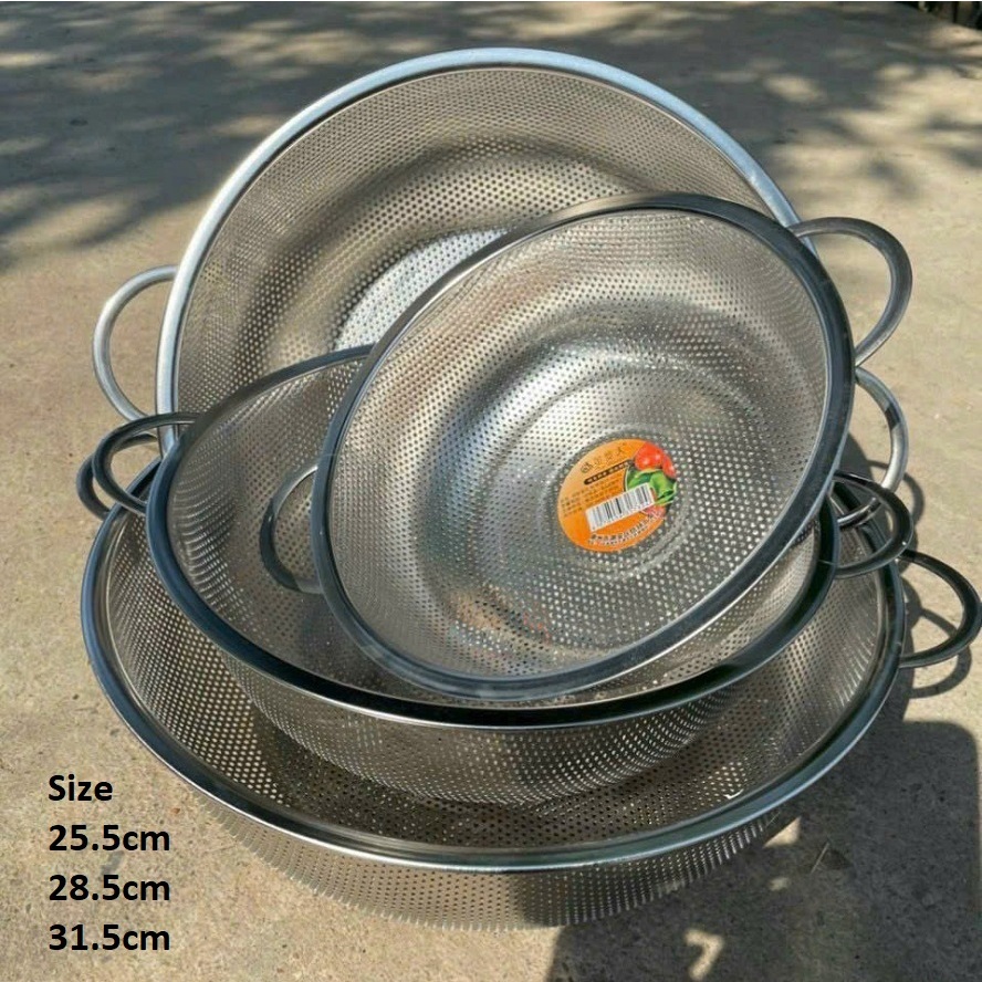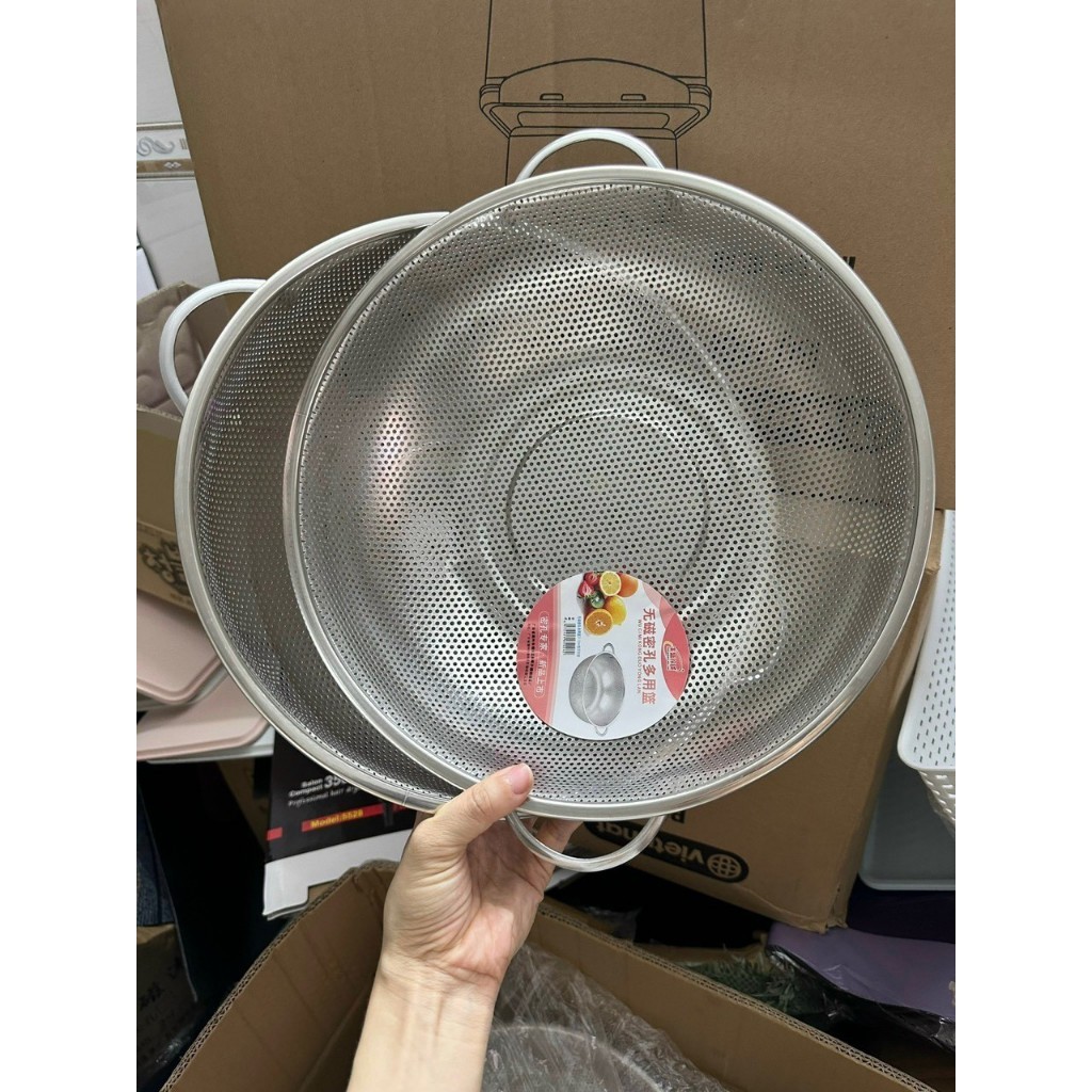 Rổ inox 2 quai tay cầm cao cấp Hàn Quốc size Nhỏ (25.5cm)/ Trung (28.5cm)/ Lớn (31.5cm)