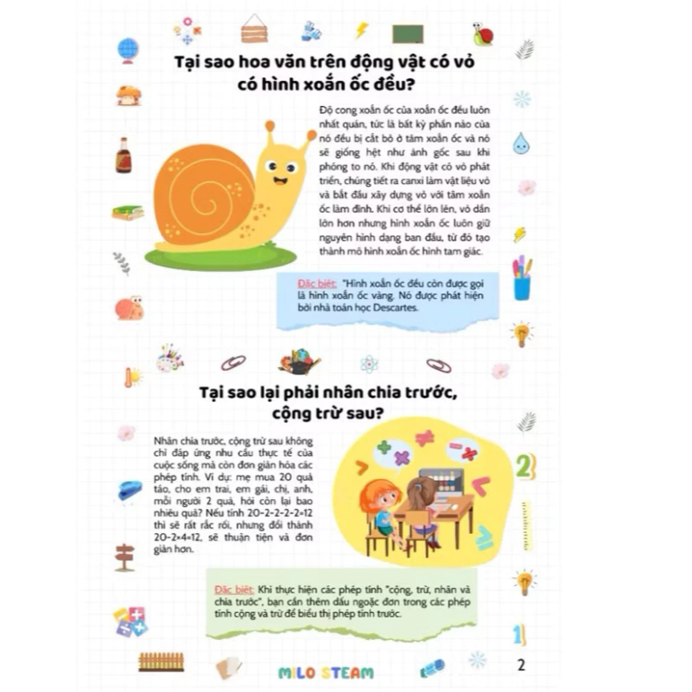 Thêm vào đó, cuốn sách cũng giúp các con nhận biết và lí giải các hiện tượng tự nhiên như vì sao cây lại rụng lá? vào mùa thu hình dạng của mây sẽ như thế nào thì sẽ có bão? Trong sách còn nêu ra các biện pháp cơ bản để phòng chống thiên tai hoặc các tai nạn không mong muốn xảy ra như hỏa hoạn hoặc đuối nước