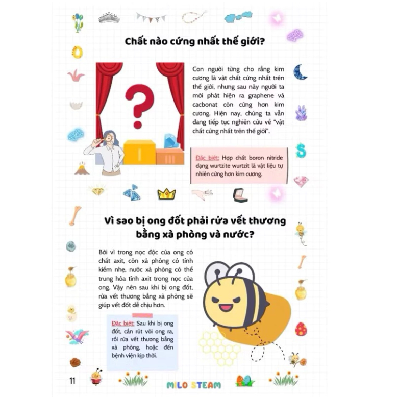 Tổng hợp các kiến thức thú vị trong cuộc sống hằng ngày. Thông qua cuốn sách, các con sẽ được làm quen với vũ trụ kỳ bí, với cách thức giao tiếp của các phi hành gia bên ngoài không gian và những đặc điểm chỉ ngoài vũ trụ mới có