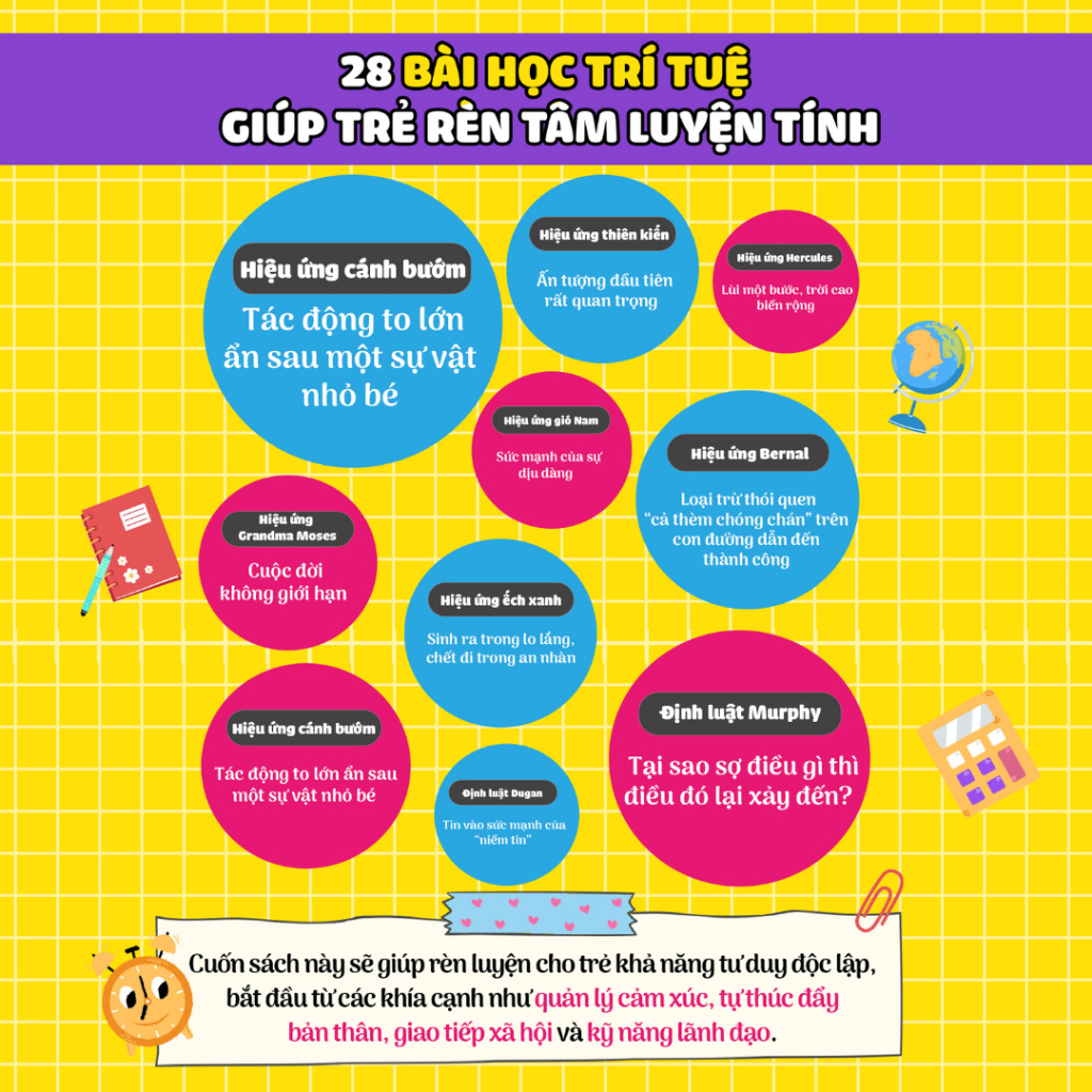 Về cấu trúc, cuốn sách được sắp xếp thành các chủ đề bao gồm: “Giải thích thuật ngữ” để phân tích về khái niệm được đưa ra “Nội dung hiệu ứng” nhằm giới thiệu lí do ra đời của lí luận “Học đi đôi với hành” với ví dụ gần gũi trong cuộc sống “Điểm sáng trí tuệ” với những câu nói ngắn gọn chỉ ra cốt lõi của lí luận “Hướng dẫn hành động” để ta có thể áp dụng vào thực tiễn dễ dàng hơn “Câu chuyện thực tế”, “Bài học cuộc sống” để tư duy được phát huy và “Truyện tranh thú vị” để hiểu được các nguyên lí một cách hứng thú hơn. Tám phần này thể hiện một cách rõ ràng, giúp cho những bạn đọc nhỏ tuổi hiểu một cách triệt để các khái niệm và lợi ích thiết thực khi áp dụng các nguyên lí vào cuộc sống thực tế.