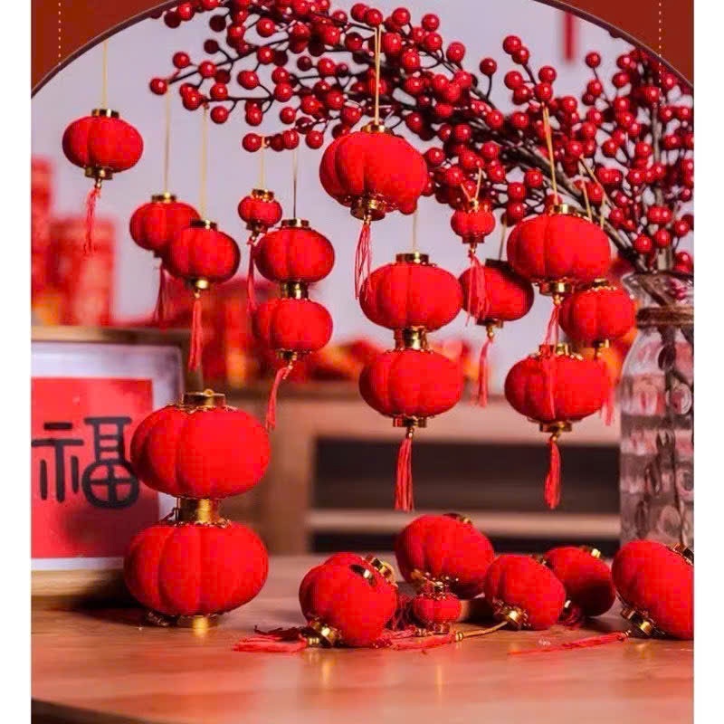 Bộ đèn lồng đỏ mini dùng để trang trí cây mai, cây đào hoặc không gian ngày Tết, tạo vẻ ấm áp và may mắn. Thiết kế nhỏ gọn, dễ treo và bền màu.