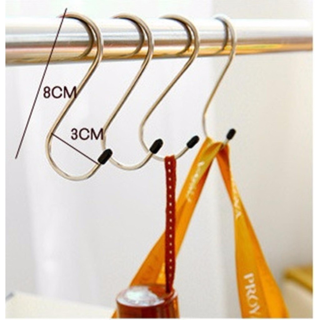 -Tên Sản Phẩm : Set 4 móc treo chữ S inox tiện dụng treo đồ quần áo hàng hóa đa năng