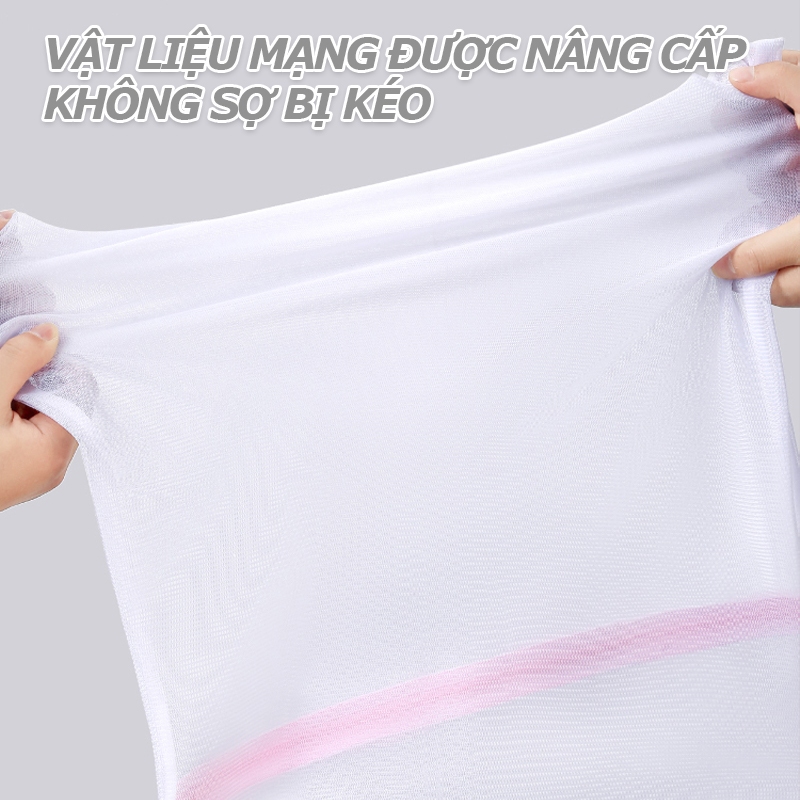 – Túi giặt được làm bằng vải lưới mỏng dệt thưa và có những lỗ thủng, đủ to để cho nước, bột giặt, nước xả chui vào và thoát ra nhưng vẫn đảm bảo đủ nhỏ để ngăn không cho quần áo trong túi bị cuốn vào trong lồng máy.
