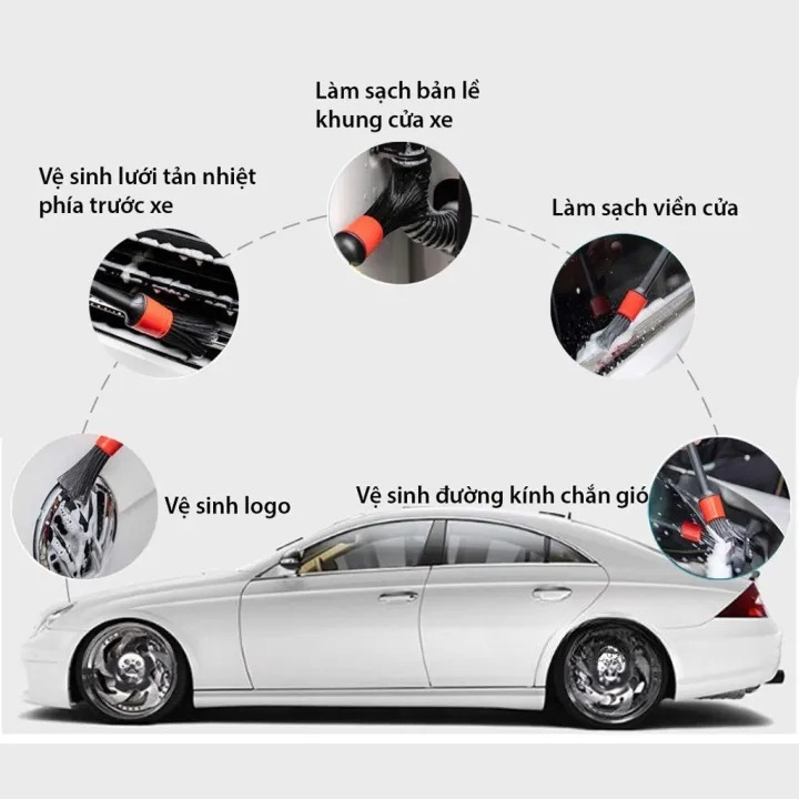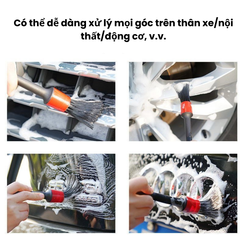 Bộ cọ rửa chăm sóc ô tô bao gồm 5 cây cọ với cấu tạo như sau: