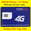 – Sim 4G Mobifone khuyến mại 500Gb/tháng