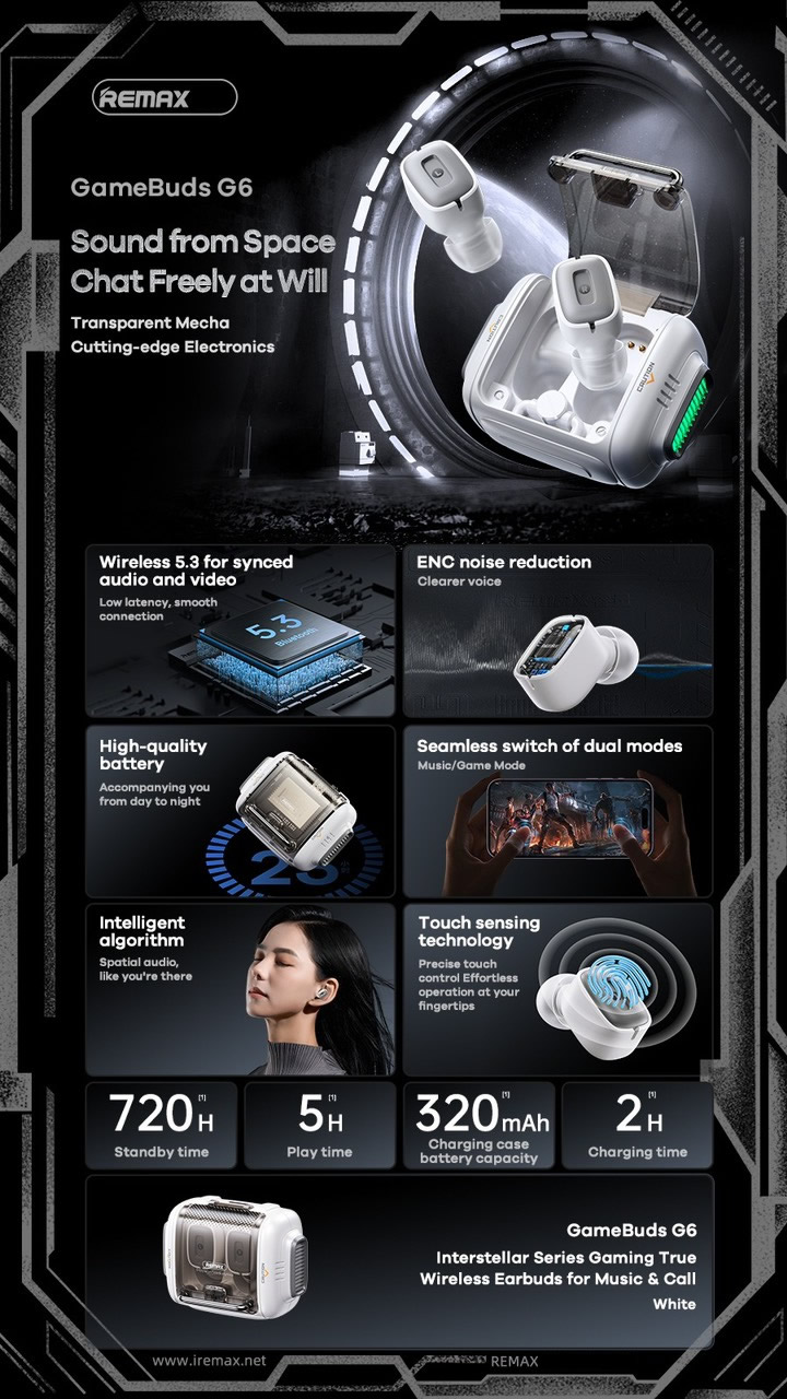 Tai Bluetooth V5.3 Remax GameBuds G6 30mAh/320mAh ///DL
