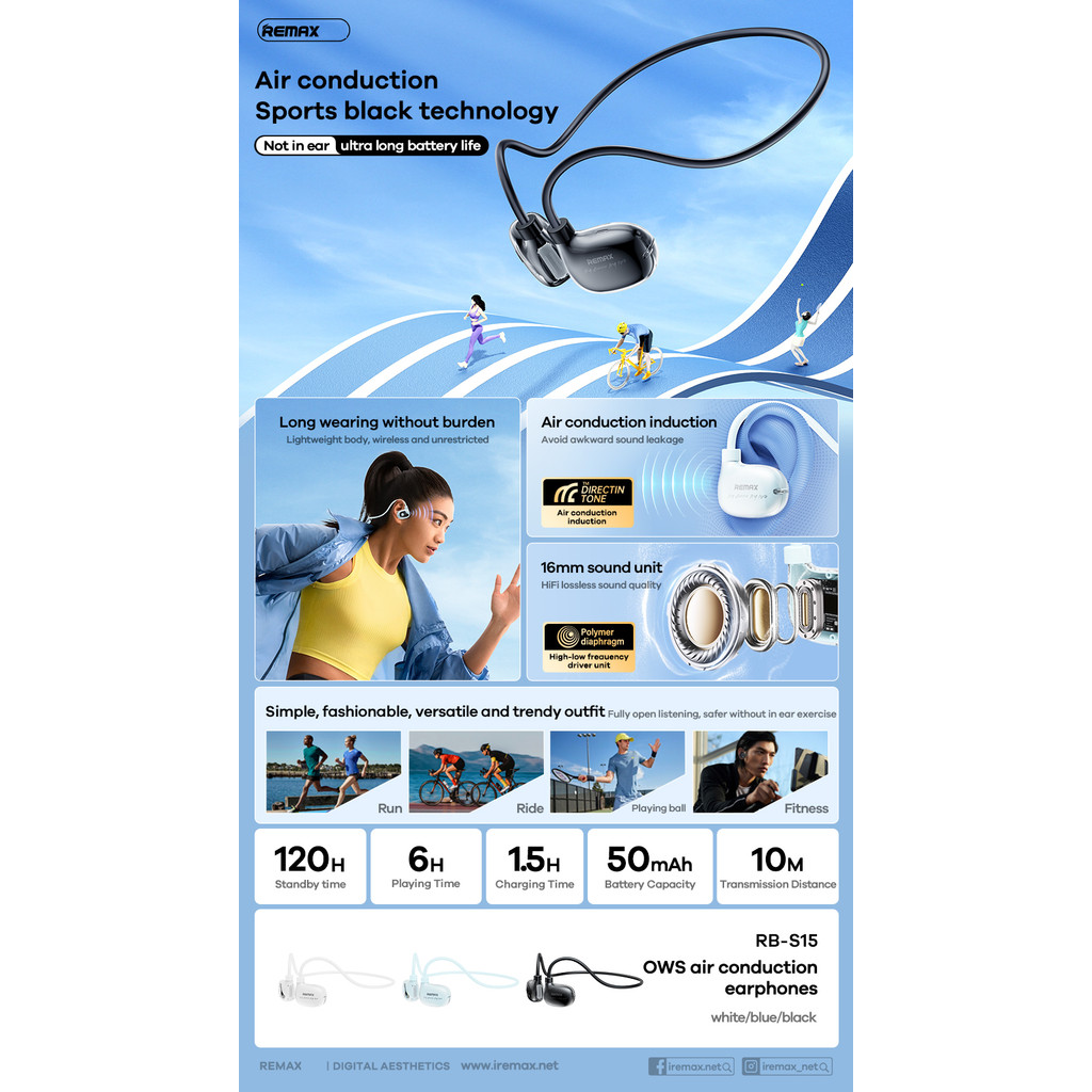 4、Nghe mở tai. Thiết kế không nhét trong tai để an toàn hơn tập thể dục và nhận thức tốt hơn về môi trường xung quanh.