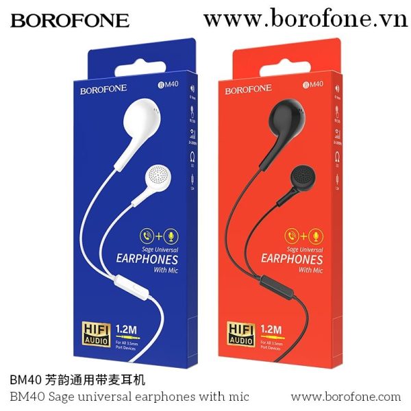 Tai nghe BOROFONE BM40 Sage với micrô, phích cắm âm thanh 3,5mm, điều khiển nút đơn, cáp 1,2m