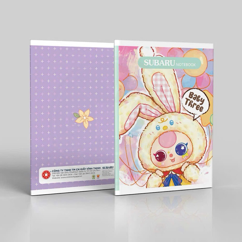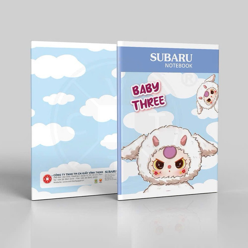 Tập Subaru 96 trang (luôn bìa), BABY THREE – định lượng 82gsm – 4 ô ly vuông.