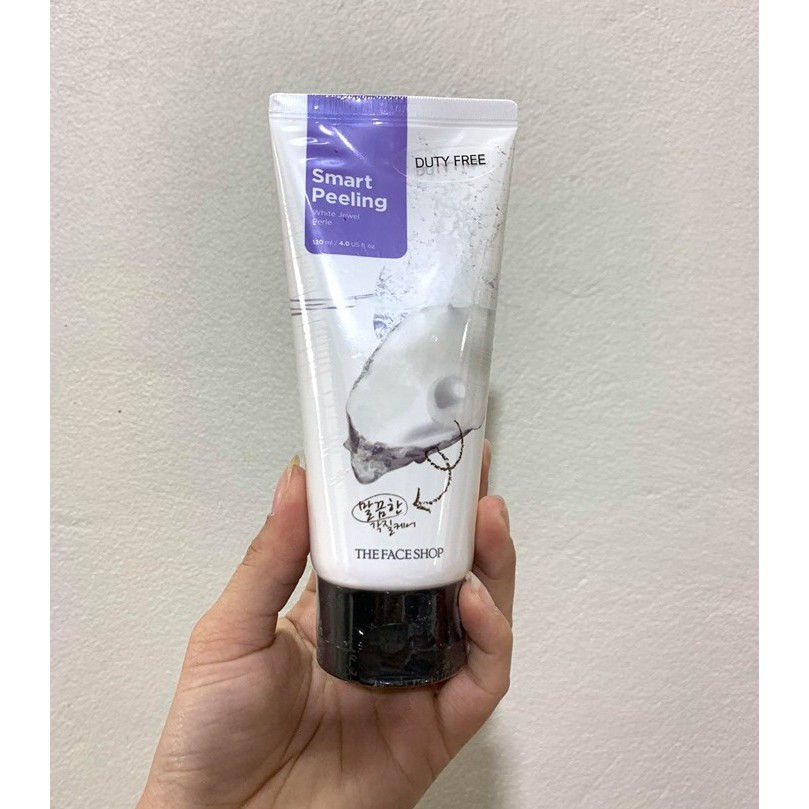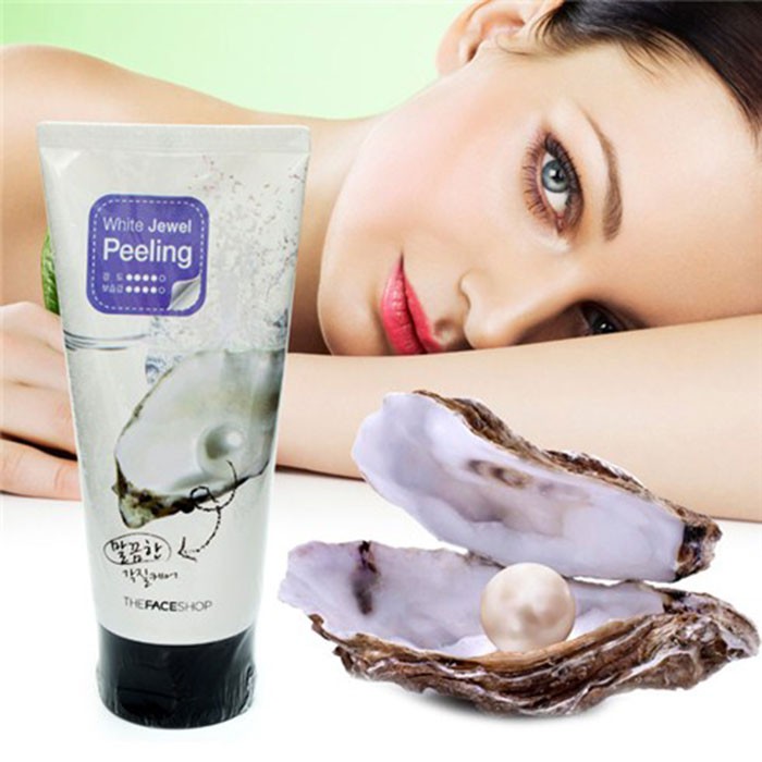 Bước 2: Lấy hỗn hợp Tẩy Da Chết Ngọc Trai – White Jewel Peeling – The Faceshop ra lòng bàn tay, rồi chấm đều lên các ngón tay.
