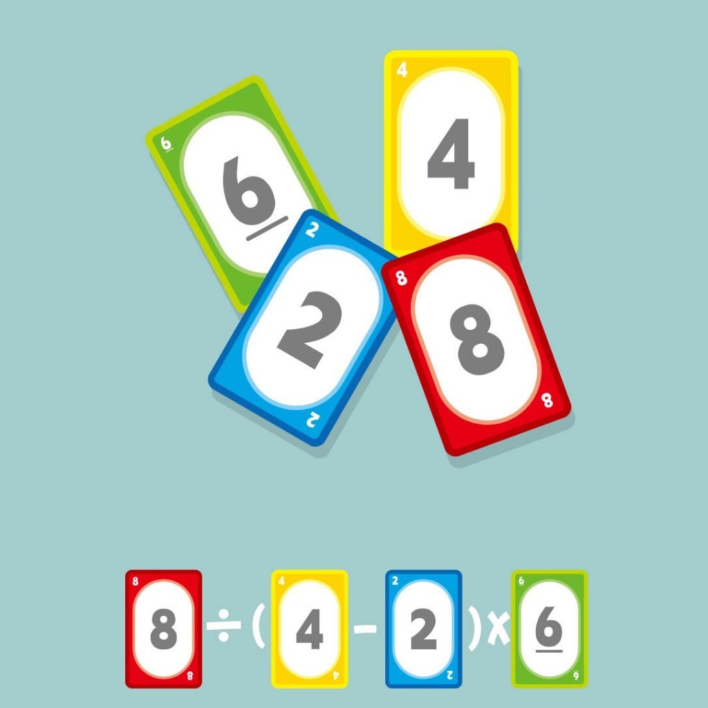 ● Cách chơi đơn giản: bé sẽ nhận 4 thẻ có số bất kỳ, từ 4 số cho sẵn bé sẽ tạo ra một phép tính có kết quả là 24.