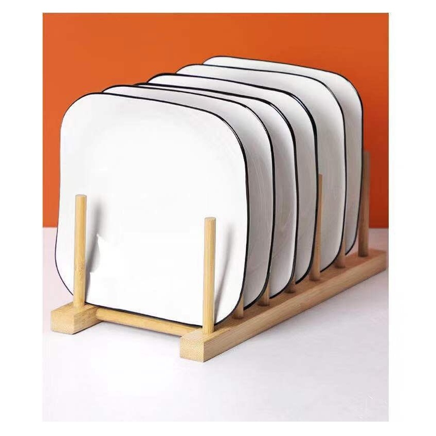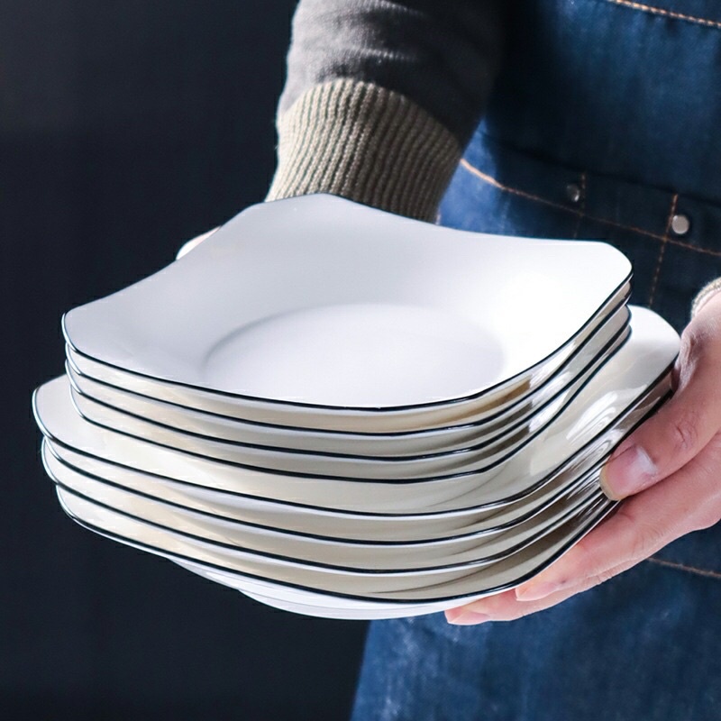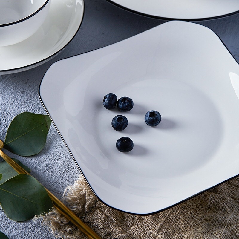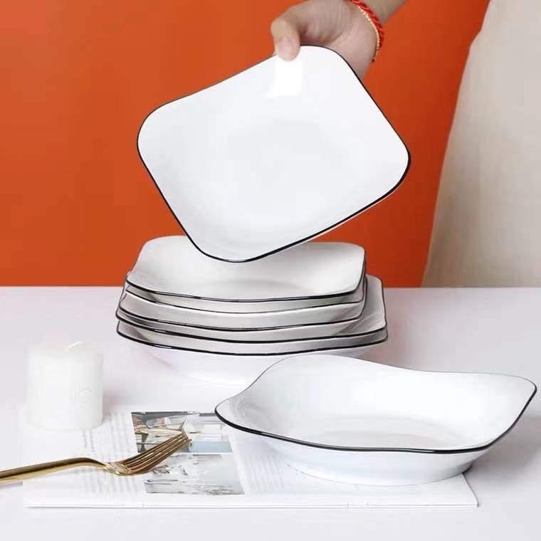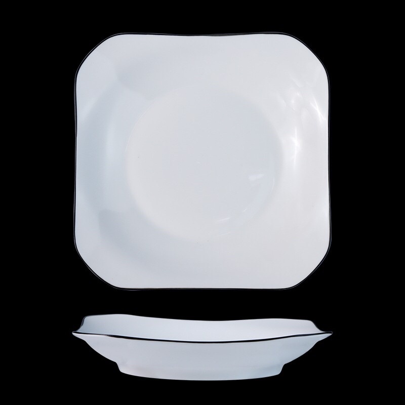 Đĩa sứ vuông, đĩa sứ trắng viền đen