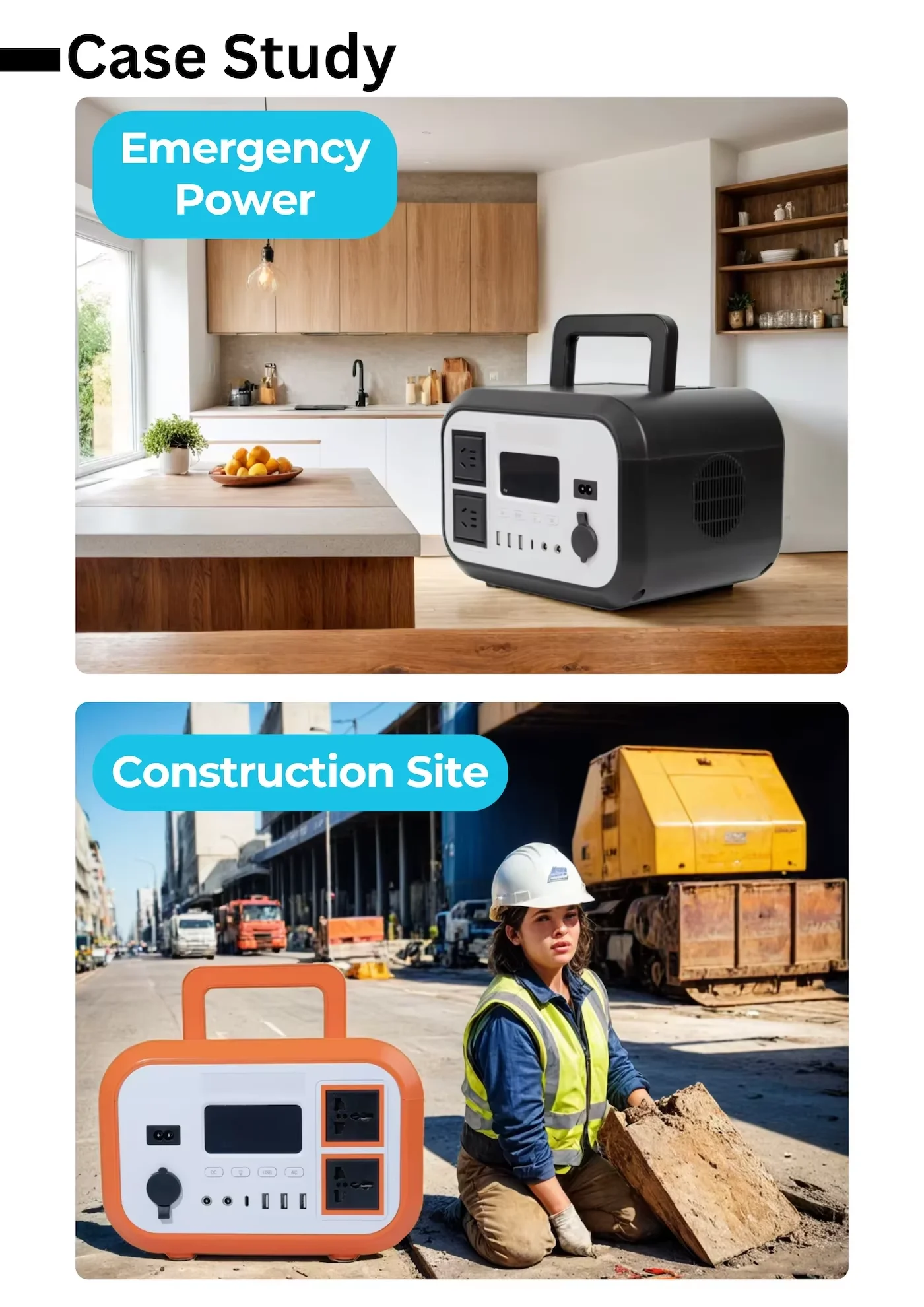 dự phòng nguồn điện khi mất điện hoặc ở xa ổ cắm điện. Ví dụ như cắm trại, du lịch đường dài, tiệc ngoài trời, BBQ, phiêu lưu,