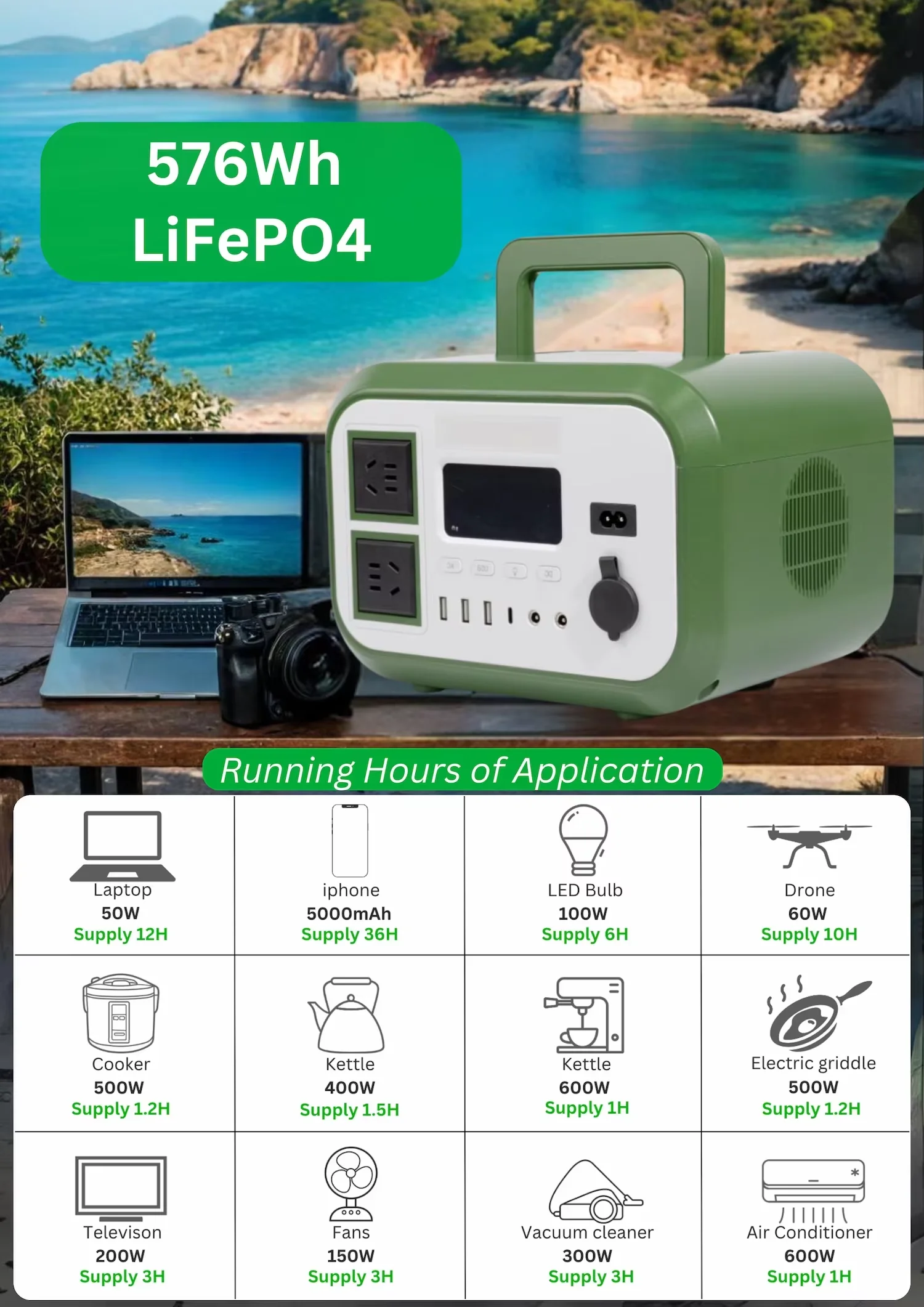 Bạn có thể sạc các thiết bị gia dụng nhỏ (tối đa 600W) như đèn LED, máy bay không người lái, máy ảnh, máy tính xách tay, bộ định tuyến, máy chiếu, điện thoại thông minh, máy tính bảng