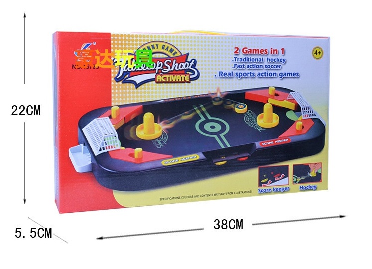 - Trò chơi khúc côn cầu trên băng . Bộ có thể lắp ráp trong vài phút và bao gồm 2 mỗi xe đẩy, pucks Quả bóng đá cùng với 2 lưới cho gõ khúc côn cầu trò chơi và 2 khay vào đó bóng đá bóng thả khi một mục tiêu là ghi bàn.