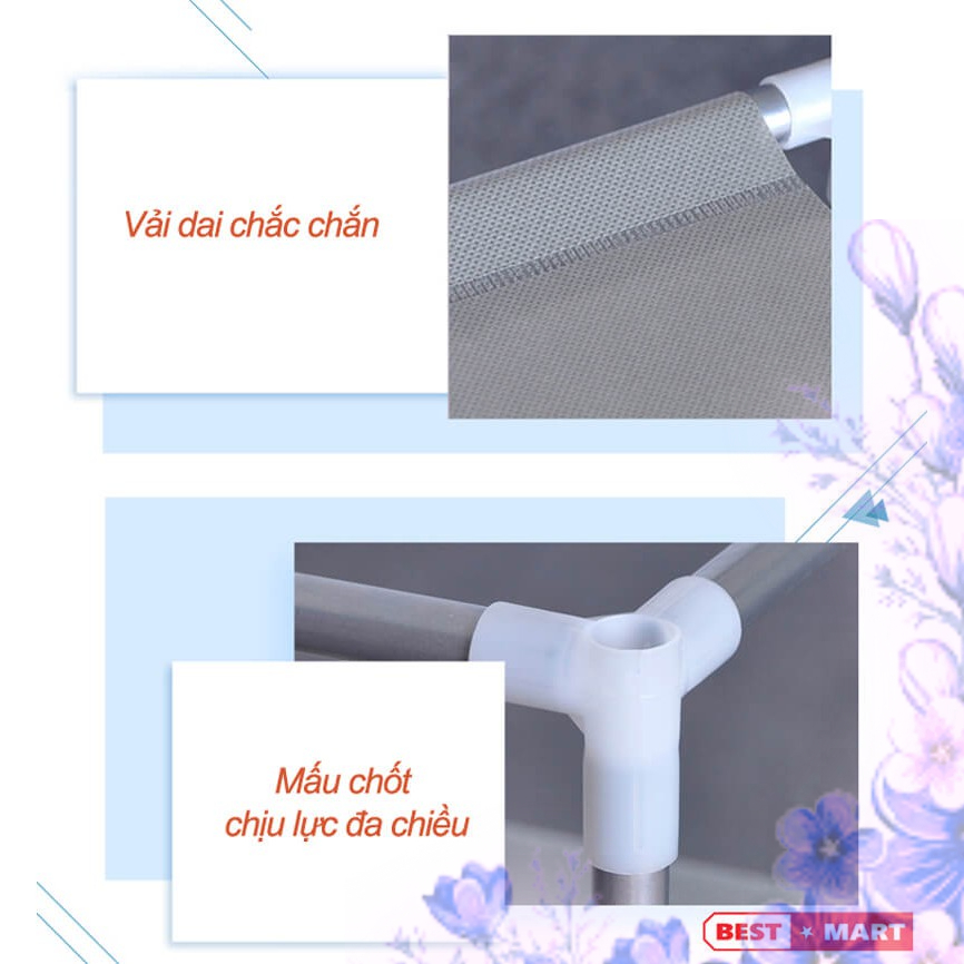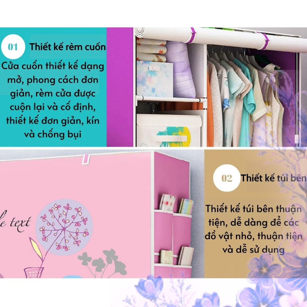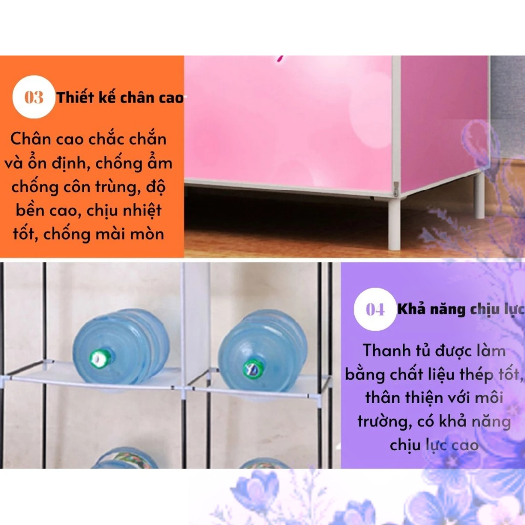 Tủ vải sử dụng khung nhôm không gỉ giúp cho tủ có khả năng chịu lực tốt hơn các loại tủ vải thông thường, chất liệu vải cao cấp có độ dai cao và khó rách, đường viền được may chắc chắn, bền đẹp với khóa kéo an toàn giúp bạn có thể dễ dàng lấy đồ vật ra khỏi tủ.