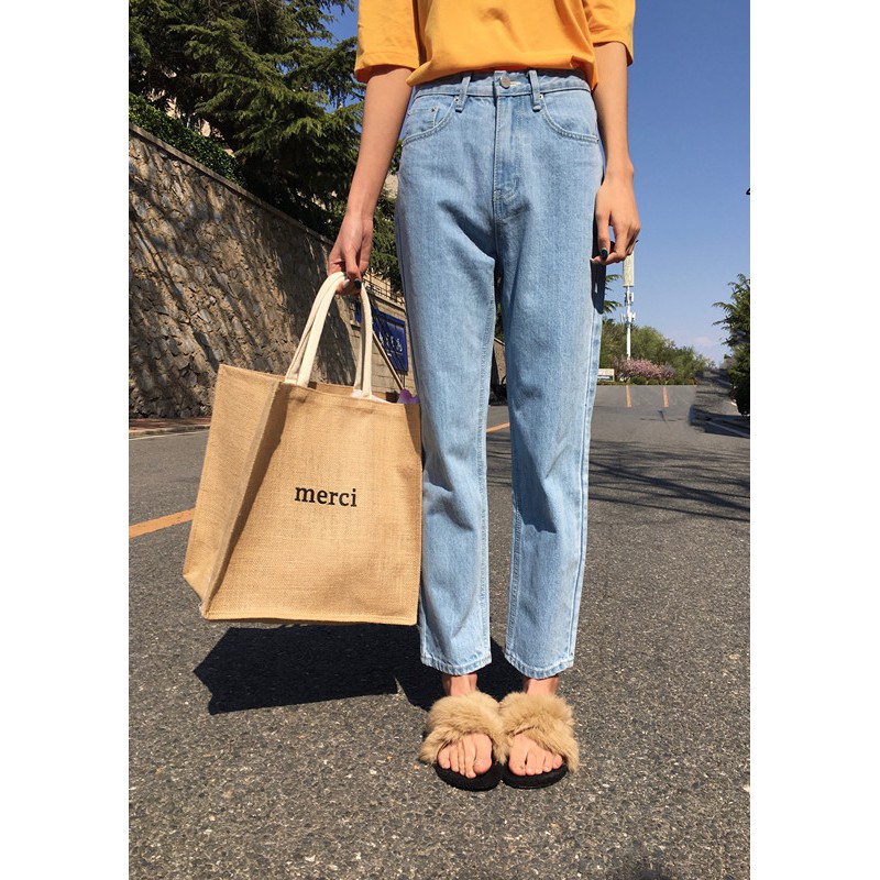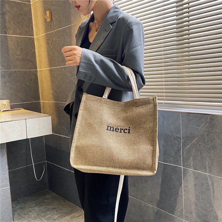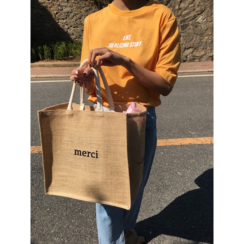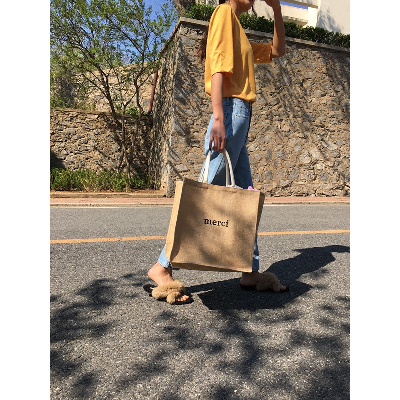 Túi cói vintage đi biển Merci – SOMEDAY xách tay nữ size lớn vải bố lanh cao cấp Hàn Quốc siêu hot 20222