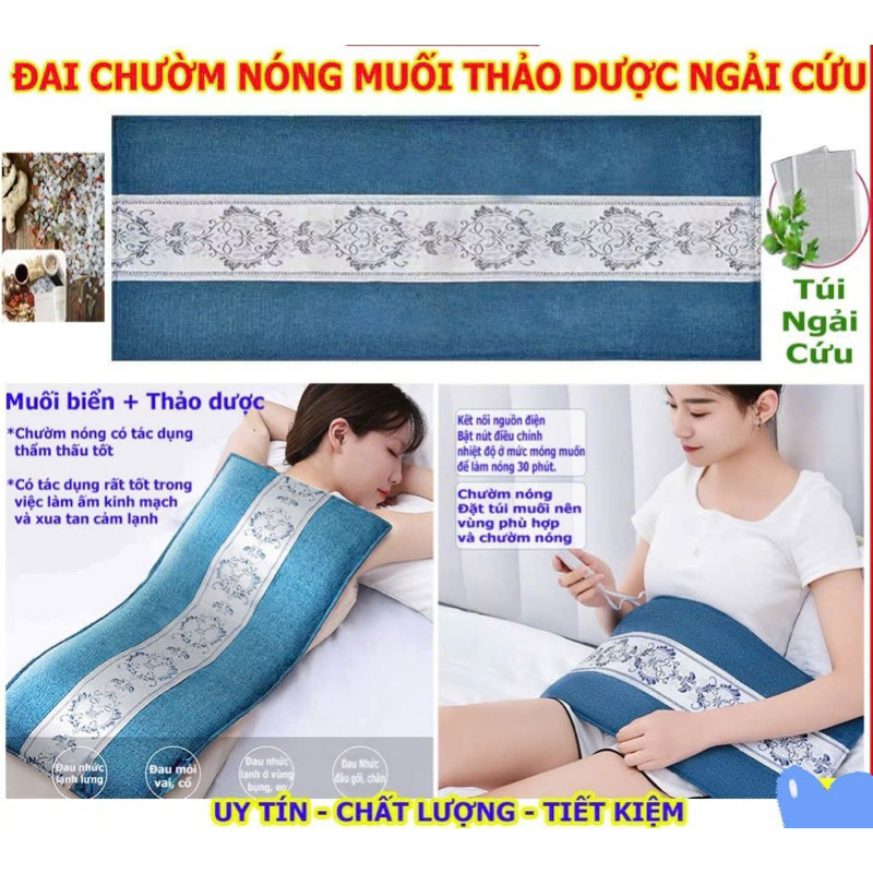 Đai chườm nóng có Ngải cứu và hồng hoa kết hợp muối biển cùng đá Toumaline giúp làm nóng và giữ ấm lâu. Muối sẽ đi vào thận, làm ấm thận, mà thận chủ cốt tủy giúp tăng sức khỏe xươg khơp. Ngải cứu tác dụng khu phong trừ hàn, ôn ấm cơ thể. Sức nóng của đai chườm giúp giãn cơ đang co cứng, tăng cường tuần hoàn, đẩy nhanh quá trình hồi phục. Ngoài ra còn giúp giảm đau bụng kinh cho phụ nữ, thư giãn hàng ngày giúp ngủ ngon, sâu giấc.