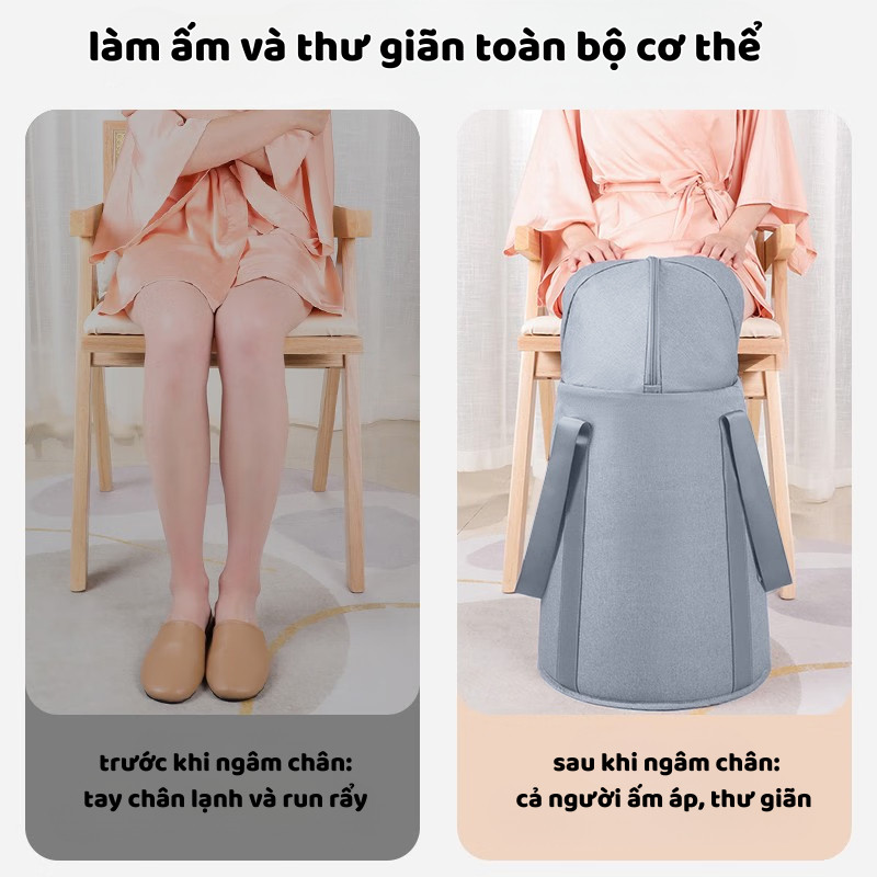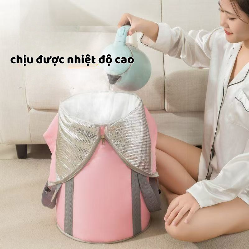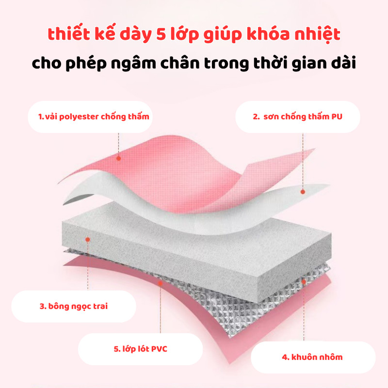 • Giữ nhiệt tốt: 5 Lớp lót chống thấm, giữ nước ấm lâu giúp nâng cao hiệu quả ngâm chân.