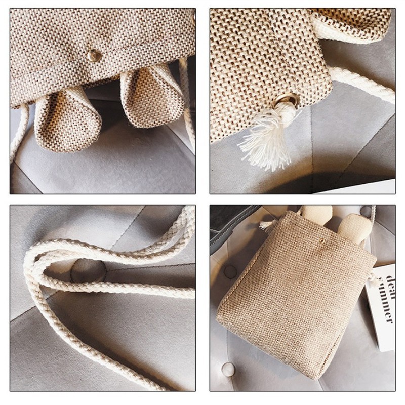➖ Với thiết kế chất liệu vải bố tự nhiên kết hợp dây đeo là dây thừng, kích thước 17cmx21cm nhẹ, nhỏ, gọn, tiện lợi, đựng được điện thoại , tiền , mỹ phẩm cách thứ luôn nha.