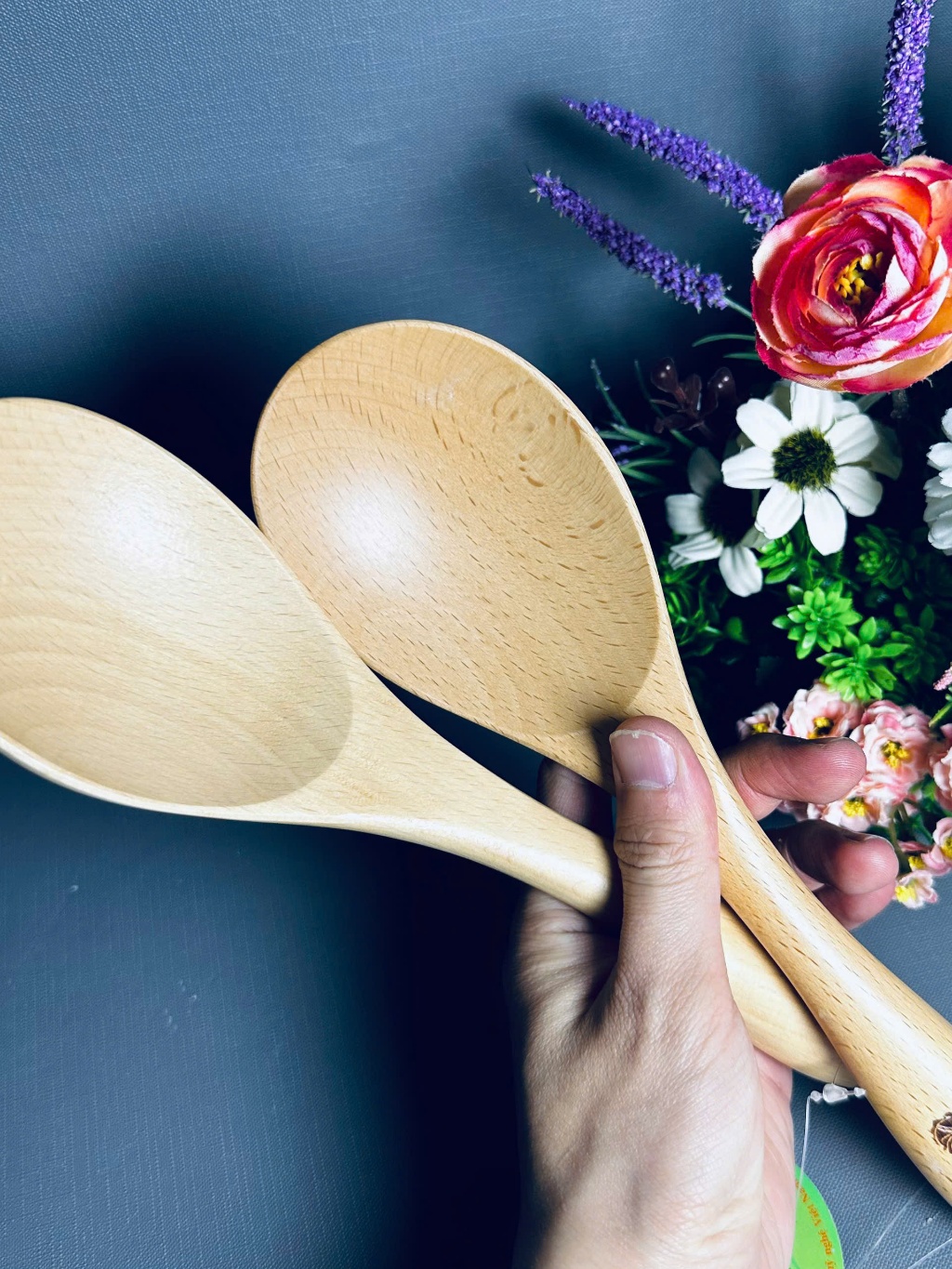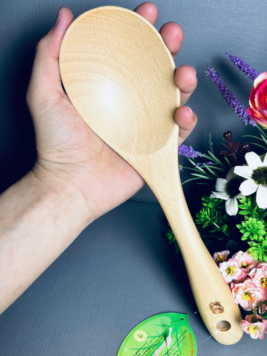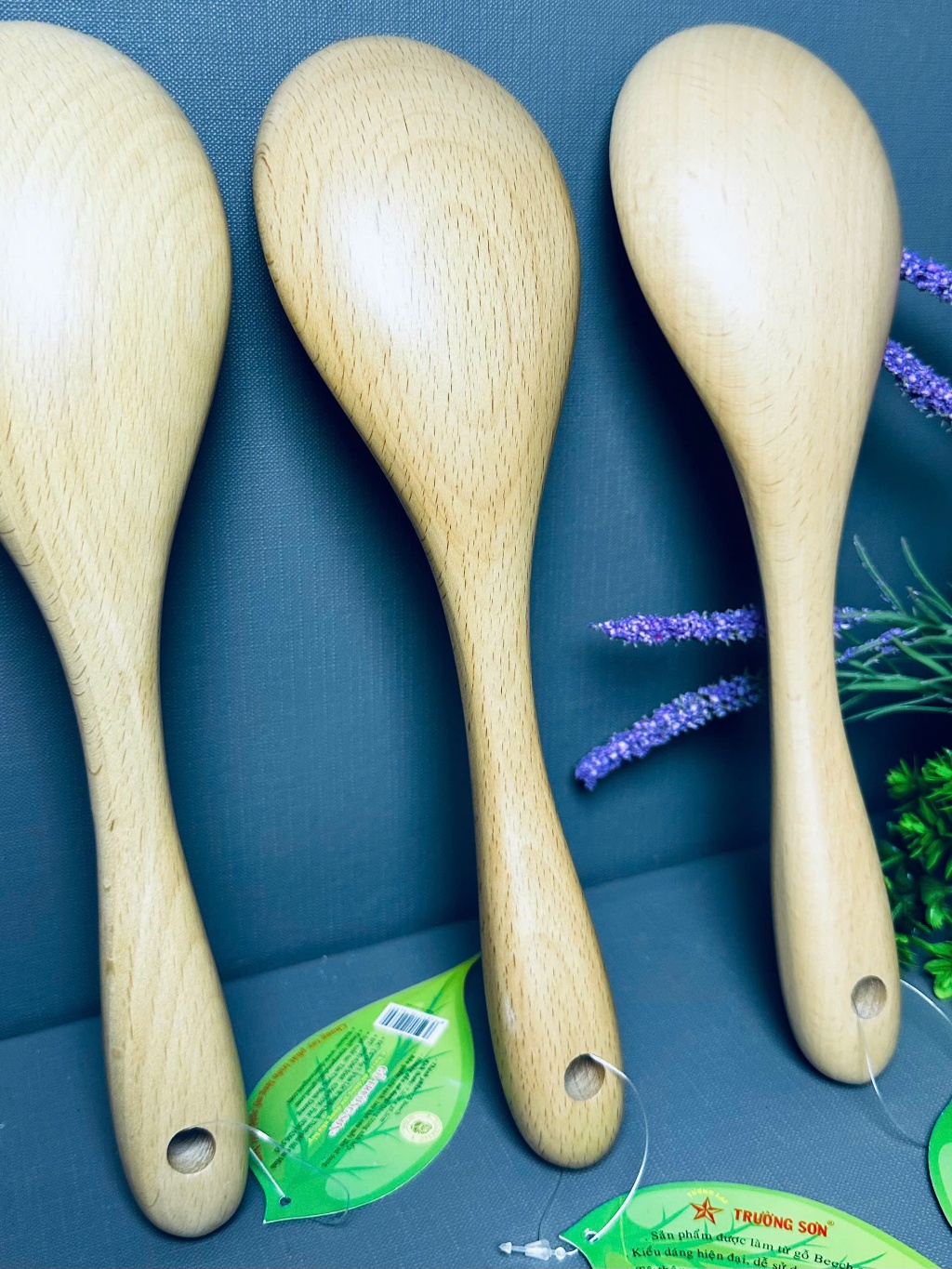 vá cơm gỗ Trường Sơn hình oval 12Vá Cơm Gỗ Xà Cừ Kiểu Dáng Oval Xới Cơm Múc Canh Rau