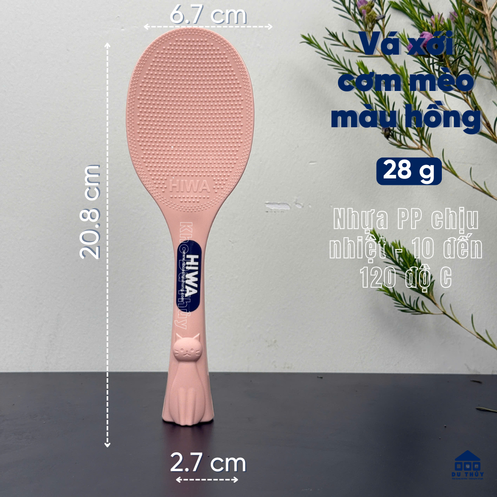 – Kiểu dáng sản phẩm: thiết kế tay cầm to chắc chắn hình chú mèo ngồi đáng yêu, có thể dựng đứng vá cơm như hình shop chụp nhờ chân vá thiết kế đế bằng, 2 mặt trên và dưới vá đều có thiết kế dạng hạt để chống dính cơm vào vá.