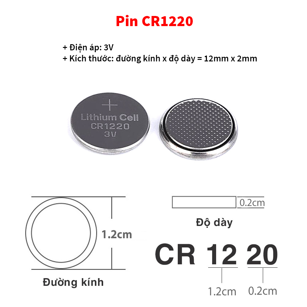 • Pin Cmos CR1220 3V sử dụng thay pin cho máy tính, đồng hồ và nhiều thiết bị khác.